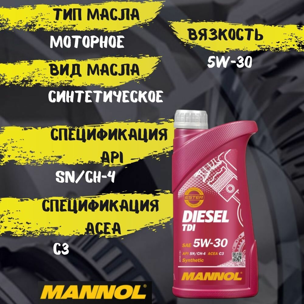 Масло mannol 5w30 diesel tdi api sn/ch-4 acea c2/c3 1л син mn7909-1