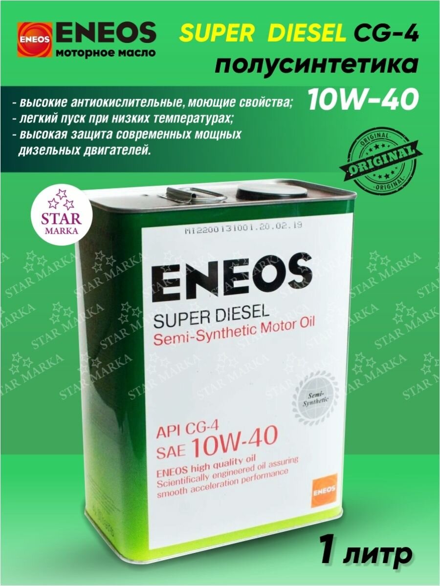 Масло моторное Eneos Super Diesel 10w40 полусинтетическое, CG-4, для дизельного двигателя, 1л, арт. 1325