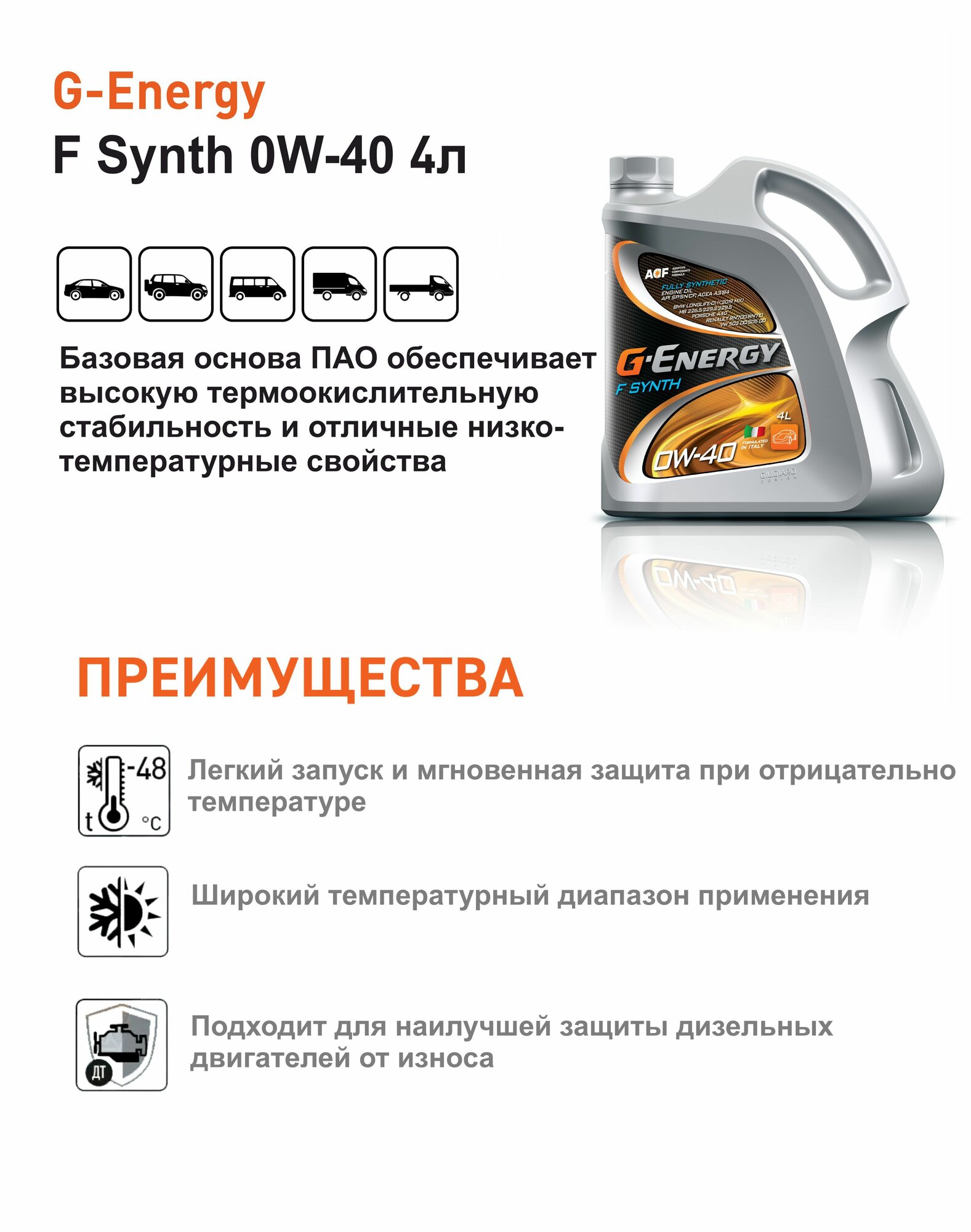 Масло F Synth 0W-40 Italy 4л G-Energy 253142288 .