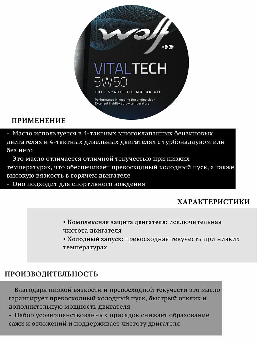 Wolf Масло Моторное Синтетическое Vitaltech 5w-50, 5л