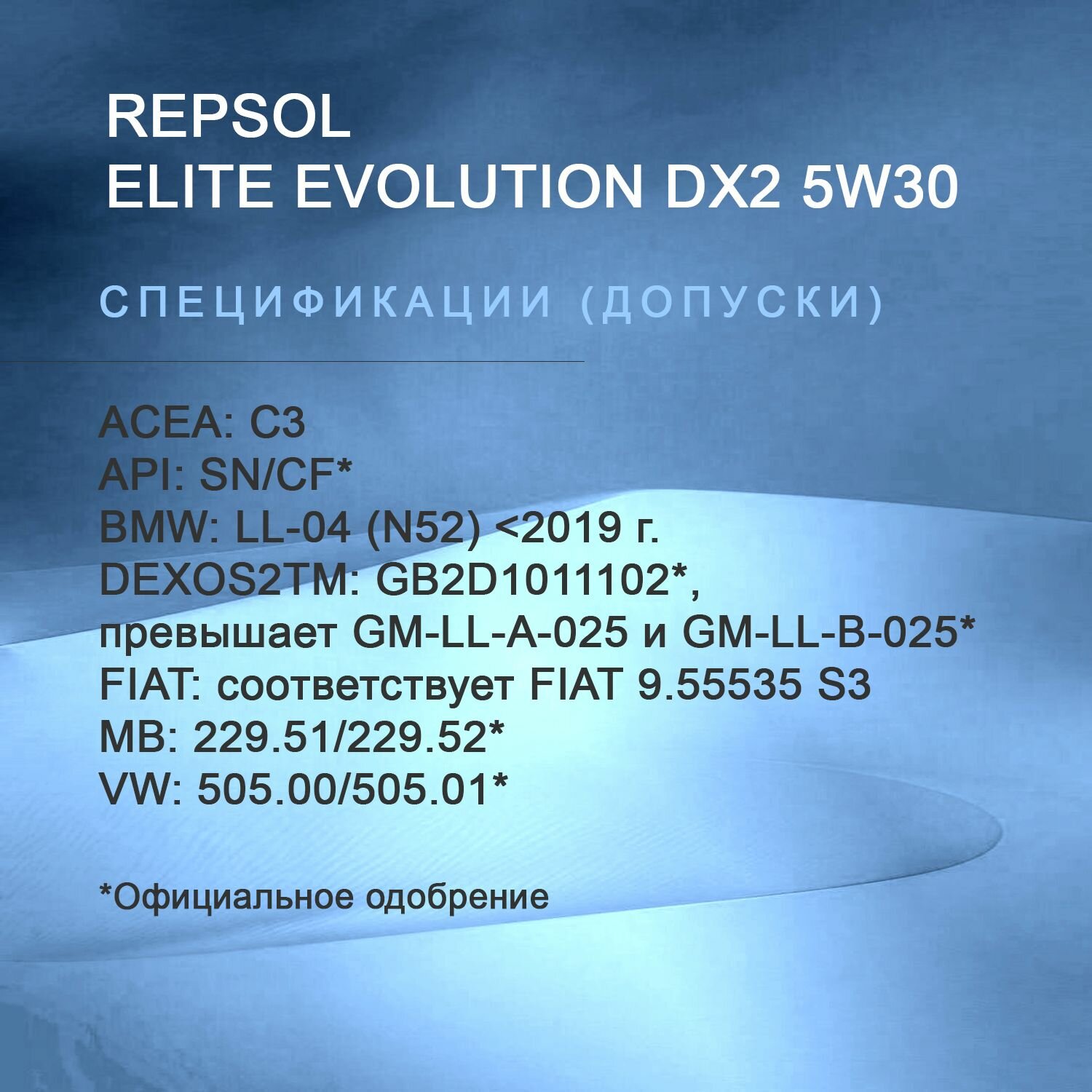 Моторное Масло Dx2 5W-30 Elite Evolution Акция 4+1 Repsol арт. 60127/R