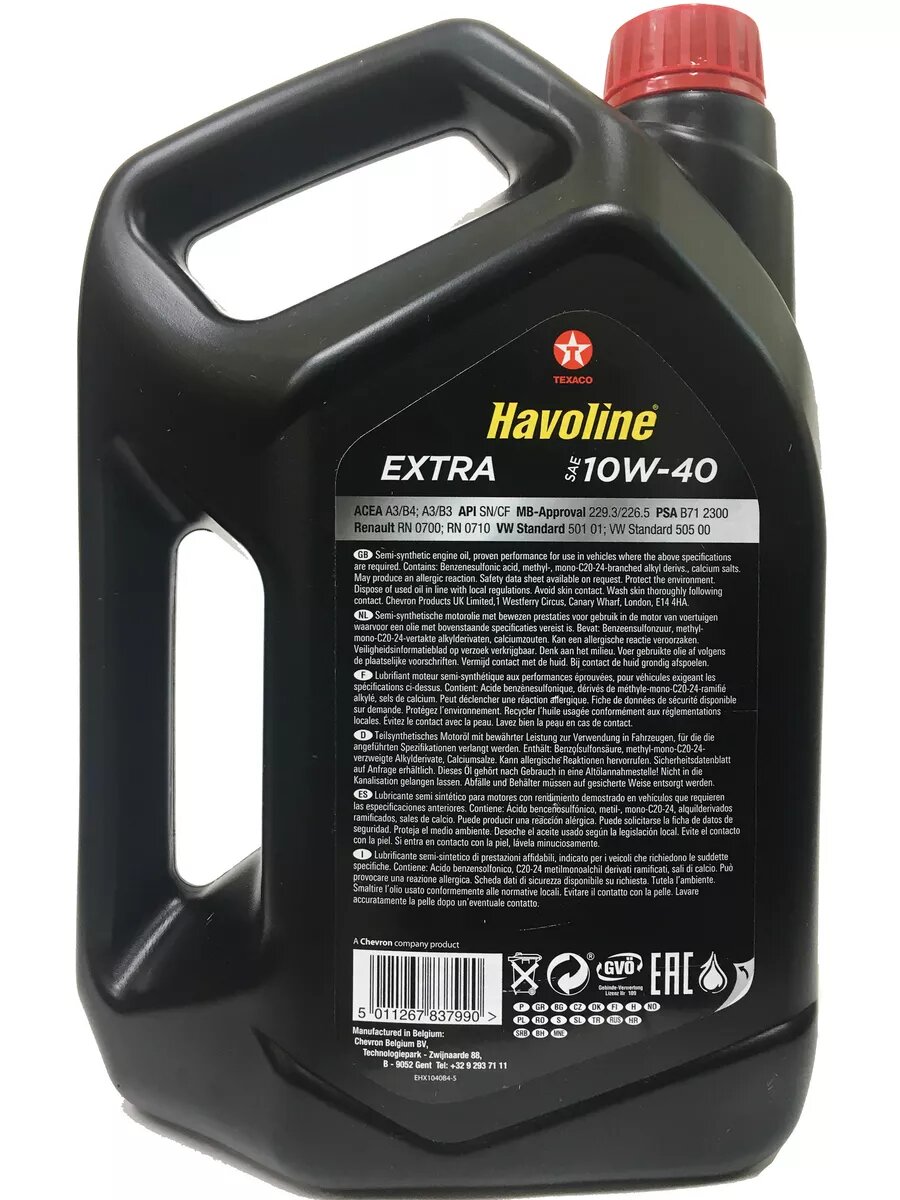TEXACO 840126LGV ММ псинт. HAVOLINE EXTRA 10W-40 5Л, новая упаков