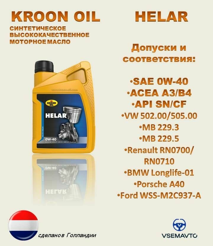 Ниже Вы можете прочитать отзывы на KROON OIL Масло Моторное Helar 0W-40 1L ( 02226 ), ознакомится с подробными характеристиками, посмотреть интересные обзоры и фотографии на KROON OIL Масло Моторное Helar 0W-40 1L ( 02226 ).