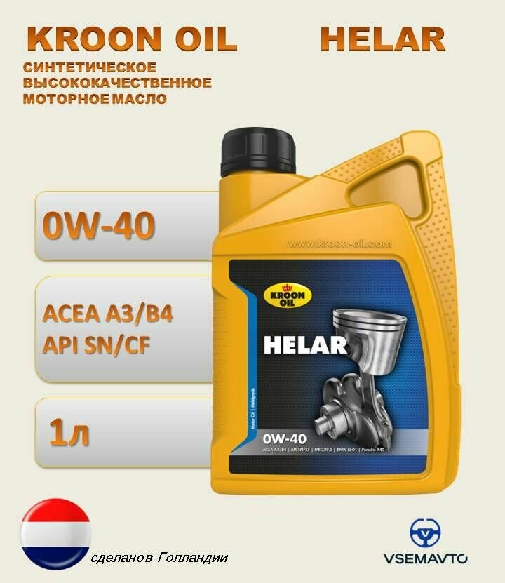 Масло моторное Helar 0W40 1L KROON-OIL / арт. 02226 - (1 шт)