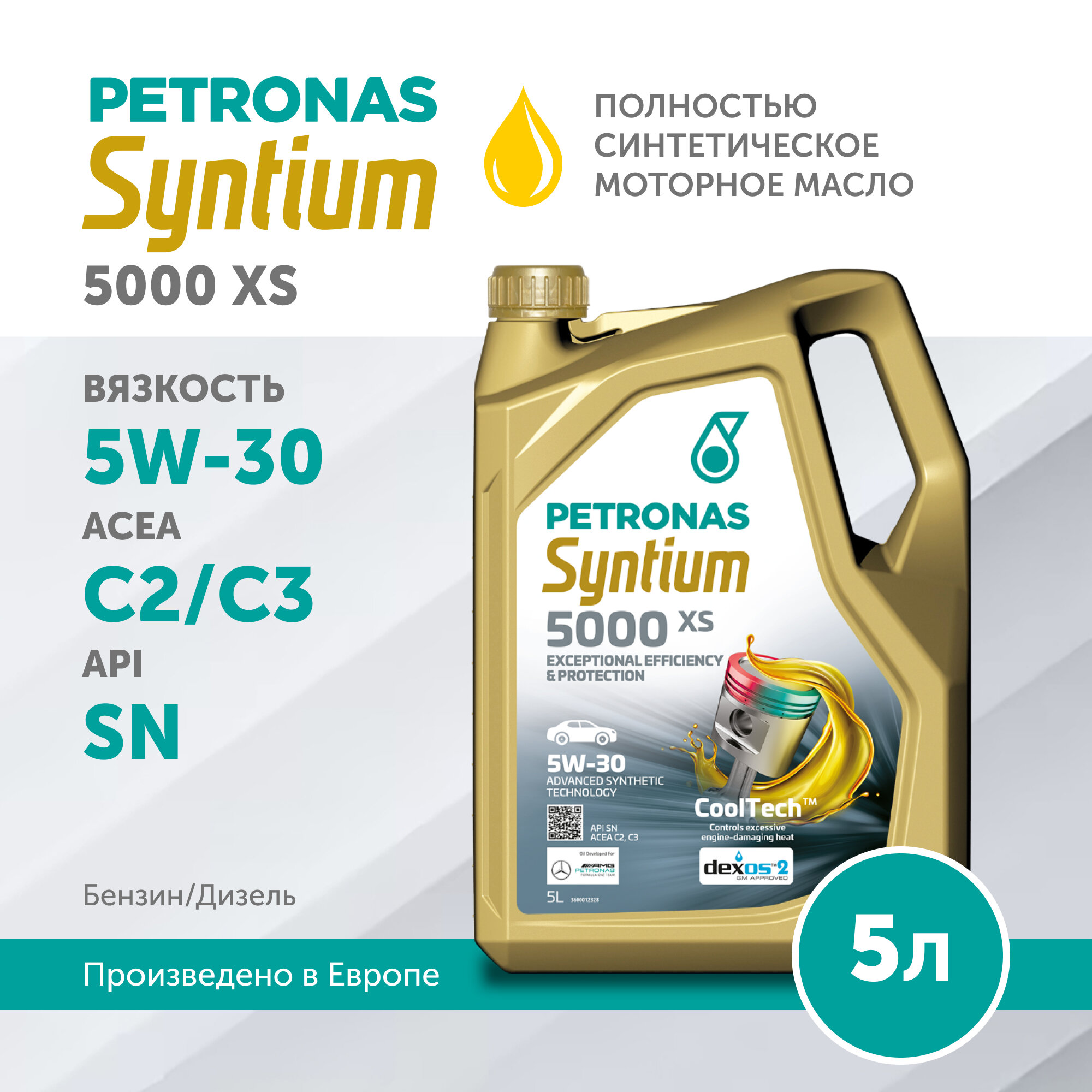 Купить Моторное масло PETRONAS SYNTIUM 5000 XS 5W-30 Синтетическое 5л MB-Approval 229.51, GM Dexos 2, OV 040 1547-D30, VW 505.00/505.01, BMW Longlife-04, FCA 955535-S3, API SN, ACEA C2 C3, 70660M12EU