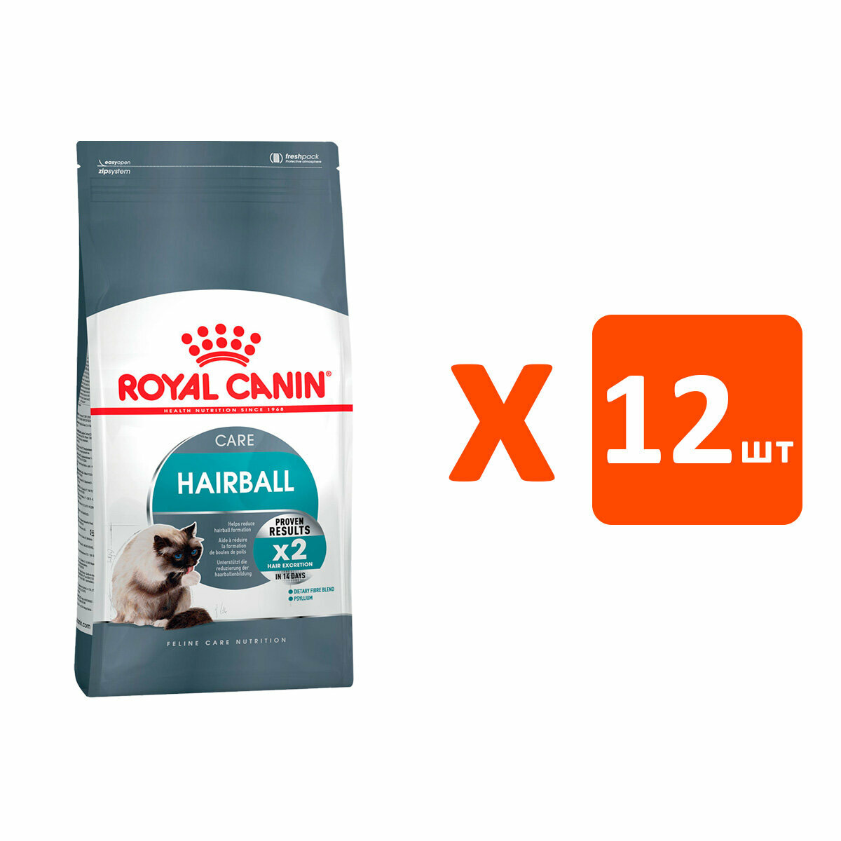 ROYAL CANIN HAIRBALL CARE для взрослых кошек для вывода шерсти (2 кг х 6 шт)