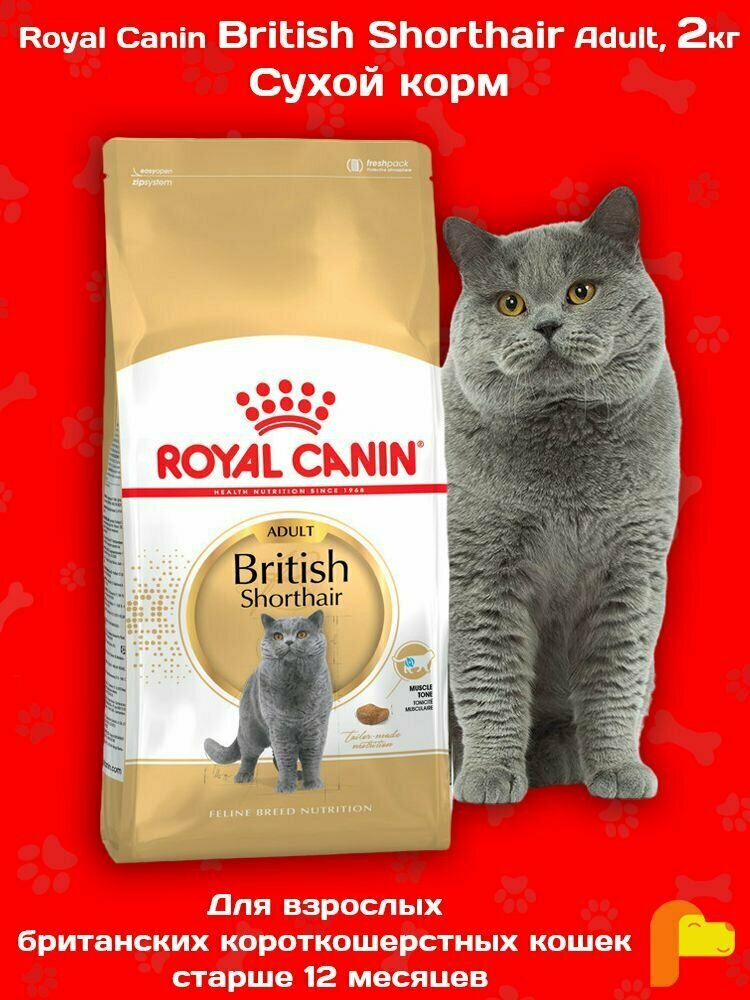 Royal Canin British Shorthair специальное питание для кошек породы британская короткошерстная, а также для кошек породы скоттиш-фолд в возрасте от 1 года до 10 лет 2 кг