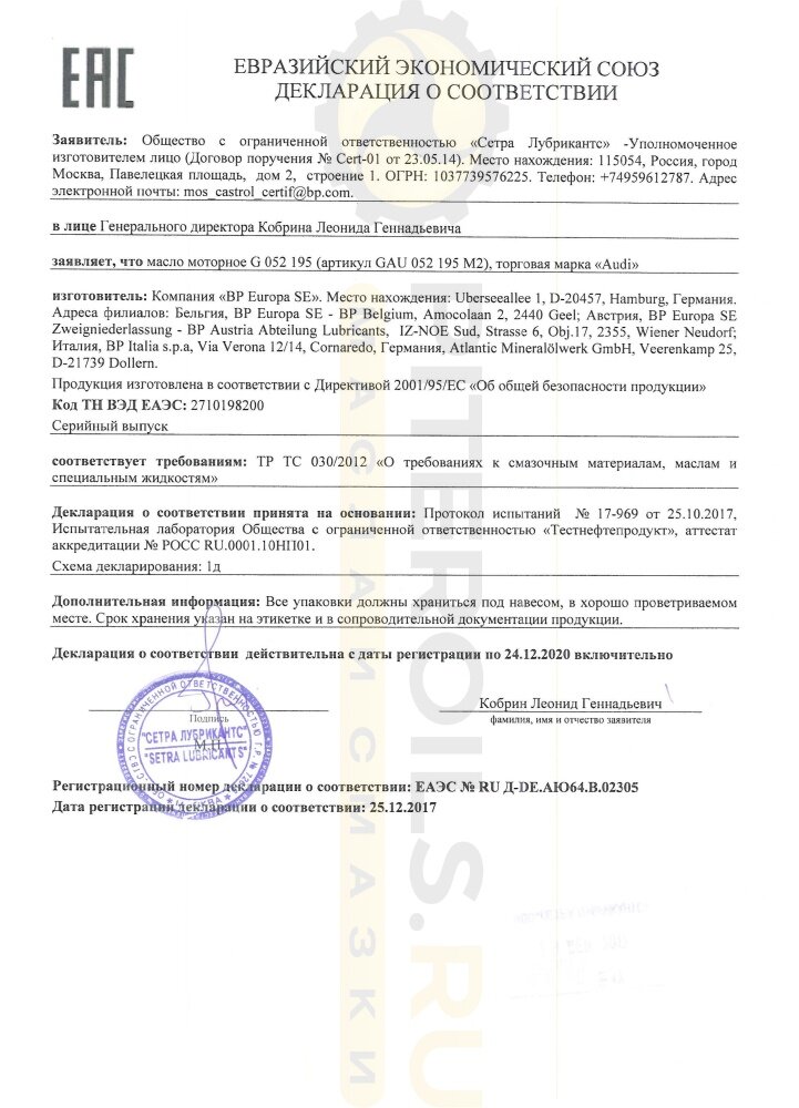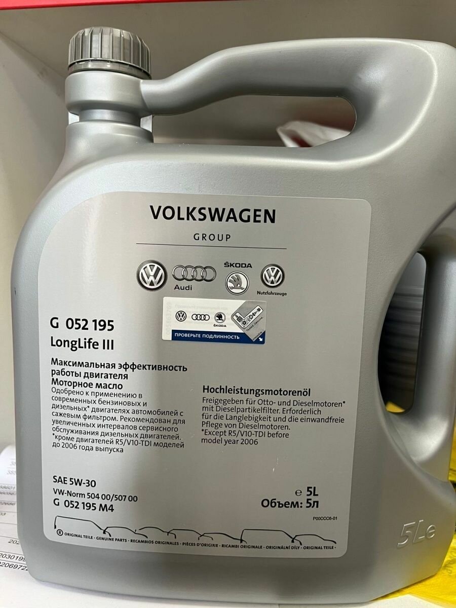 | Отзыв: | С учетом большого количества контрафакта на рынке масел VAG, были опасения при заказе этого масла. Фирменная наклейка по проверке на подлинность в наличии на канистре.Проверил на подлинность на сайте VAG? все отлично? подтвердили продукт оригинальный. |