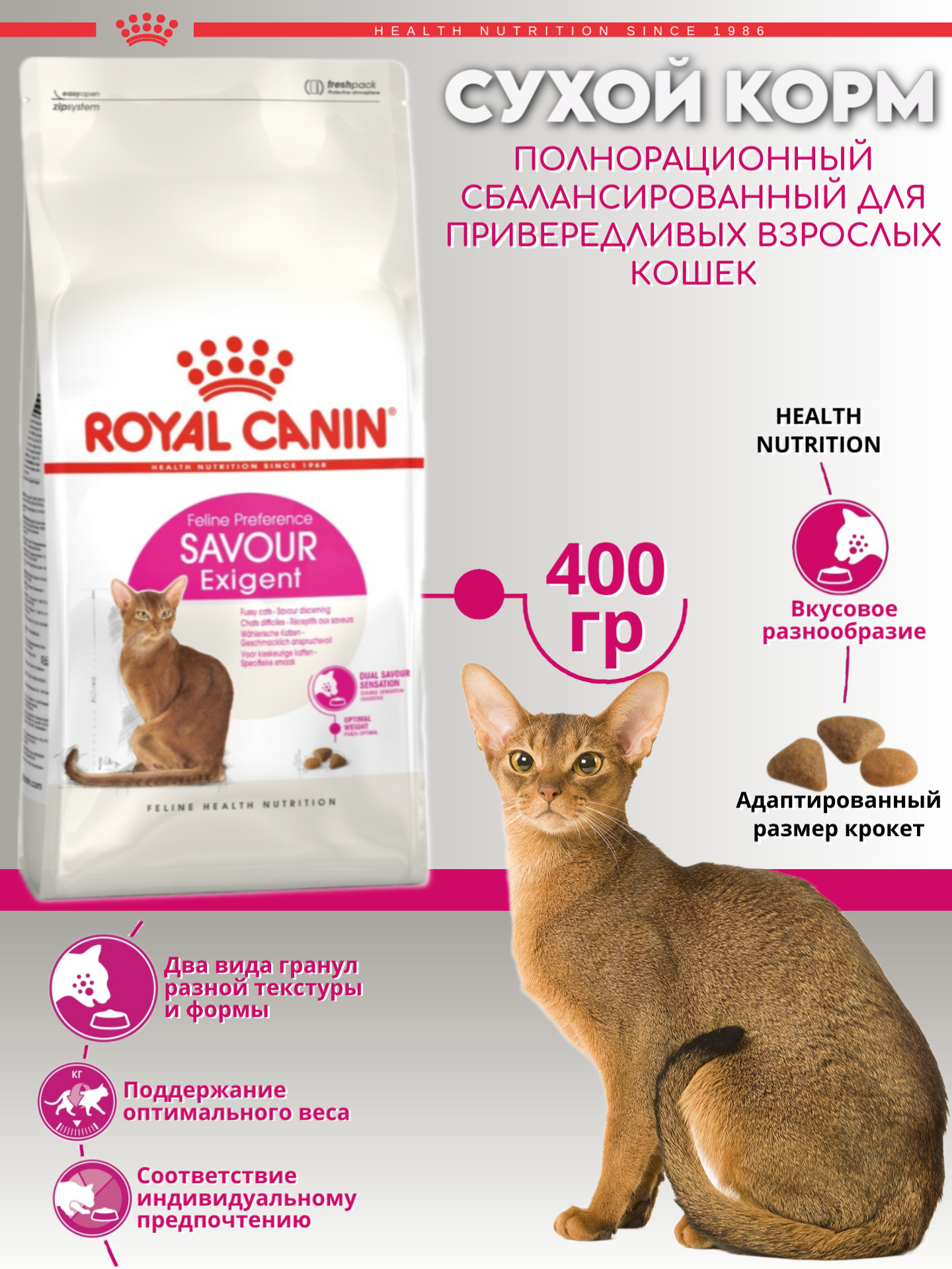 Корм для кошек Royal Canin Savour Exigent Корм сухой сбалансированный для привередливых взрослых кошек от 1 года, 0,4 кг