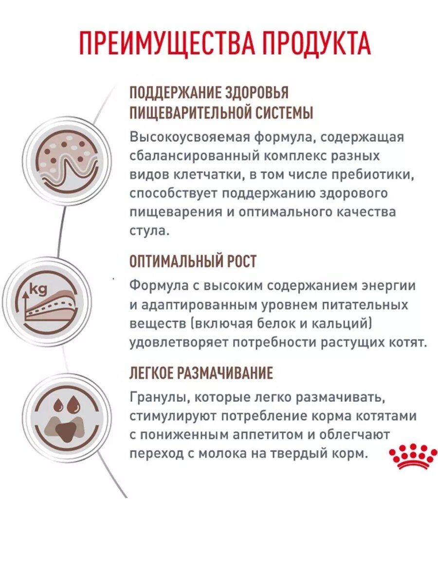 | Дополнительная информация | 1. Поддержание здоровья пищеварительной системы Высокоусвояемая формула, содержащая сбалансированный комплекс разных видов клетчатки, в том числе пребиотики, способствует поддержанию здорового пищеварения и оптимального качества стула. 2. Высокое содержание энергии Высокое содержание энергии помогает уменьшить объем порции и снизить нагрузку на пищеварительную систему. 3. Высокая вкусовая привлекательность Высокая вкусовая привлекательность стимулирует потребление корма при сниженном аппетите. |