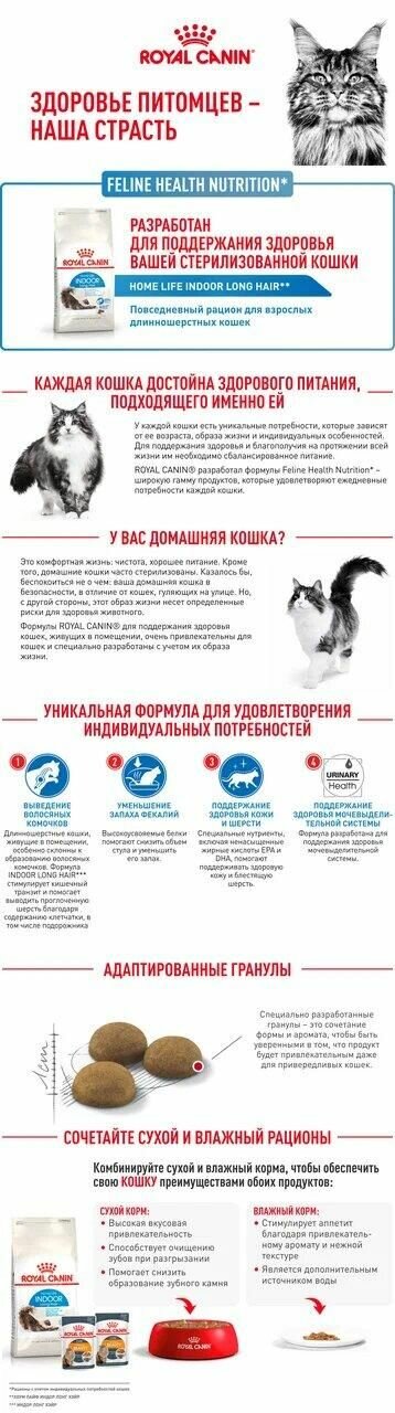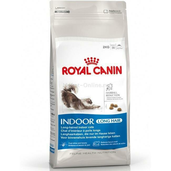Сухой корм кошек Royal Canin INDOOR LONG HAIR (индор лонг хэйр) Питание для длинношерстных и полудлинношерстных кошек, живущих в помещении, в возрасте от 1 года до 7 лет, способствует поддержанию красоты и блеска шерсти, выведению волосяных комочков 2 кг
