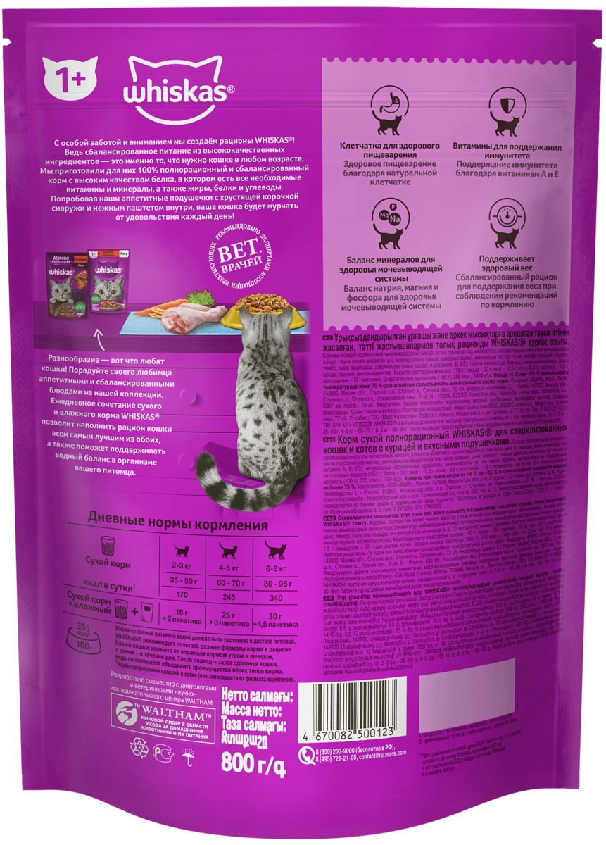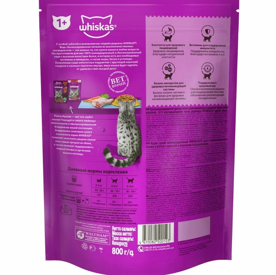 СохранитьСухой корм Whiskas для стерилизованных кошек курица 800г интересное: