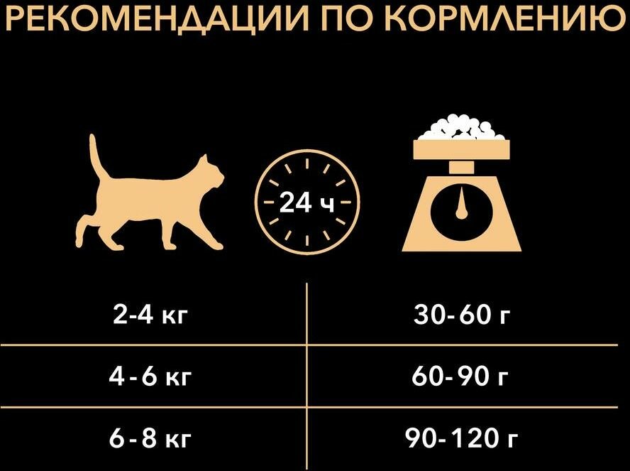 | Дополнительная информация | рекомендации по кормлению, позволяющие поддерживать идеальную форму могут варьироваться в зависимости от возраста животного, его активности и условий окружающей среды; следите за весом Вашей кошки и корректируйте количество даваемого корма; следите, чтобы у Вашей кошки всегда была чистая, свежая питьевая вода |