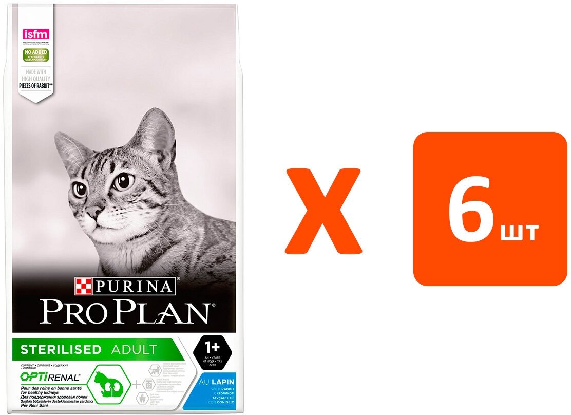 Купить PRO PLAN CAT STERILISED RENAL PLUS RABBIT для взрослых кастрированных котов и стерилизованных кошек с кроликом (1,5 кг х 6 шт)