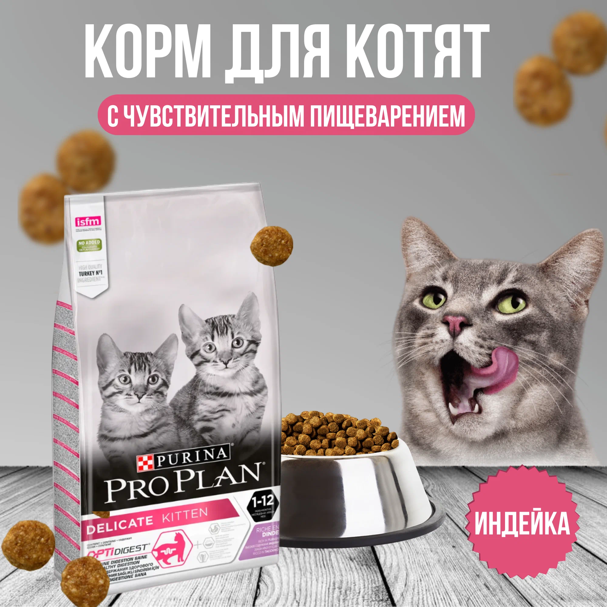 Сухой корм для котят Pro Plan Delicate при чувствительном пищеварении, с индейкой, 1,5 кг, 3 шт