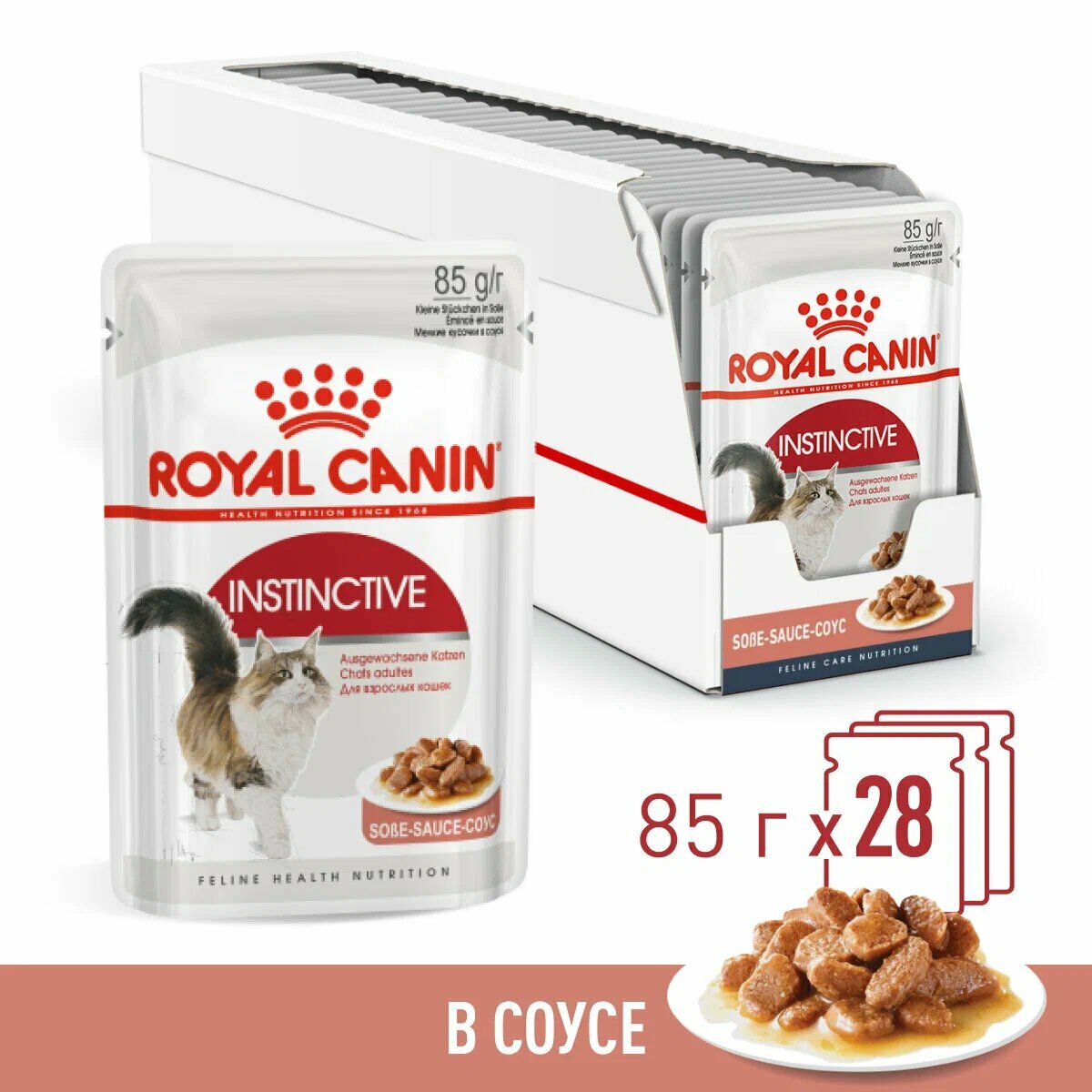 Влажный корм в соусе для кошек Royal Canin Instinctive в возрасте от 1 до 7 лет, 28*0,085 кг