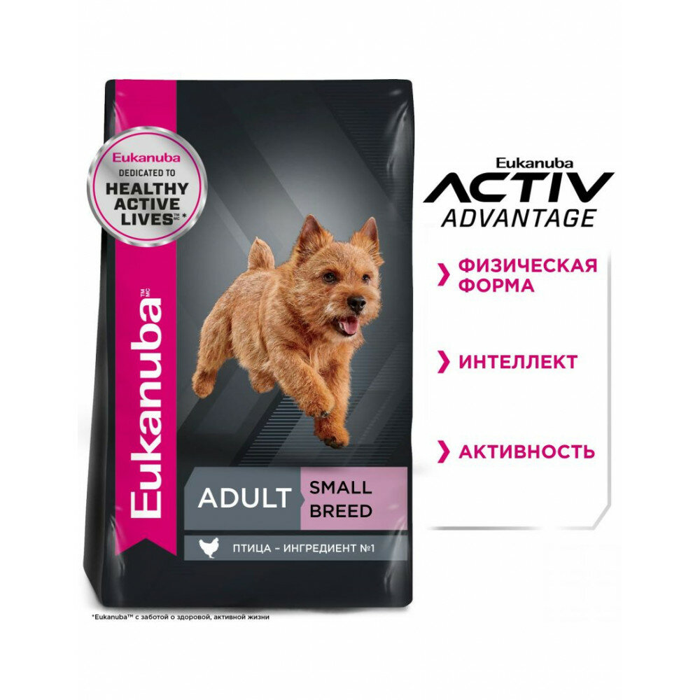 Корм Eukanuba Small Breed для собак малых пород, с домашней птицей, 3 кг
