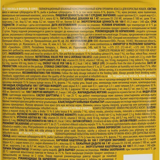Купить Влажный корм пауч Brit Premium для кошек лосось и форель в соусе,упаковка 14 шт * 85 гр
