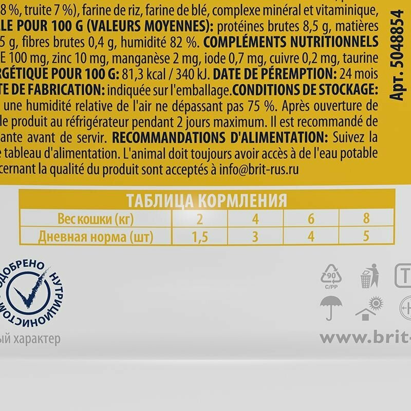 BRIT PREMIUM CAT CHICKEN SLICES FOR STERILISED д кастрир и стер кош с курицей в соусе пауч 85 гр 85 гр х 4 шт