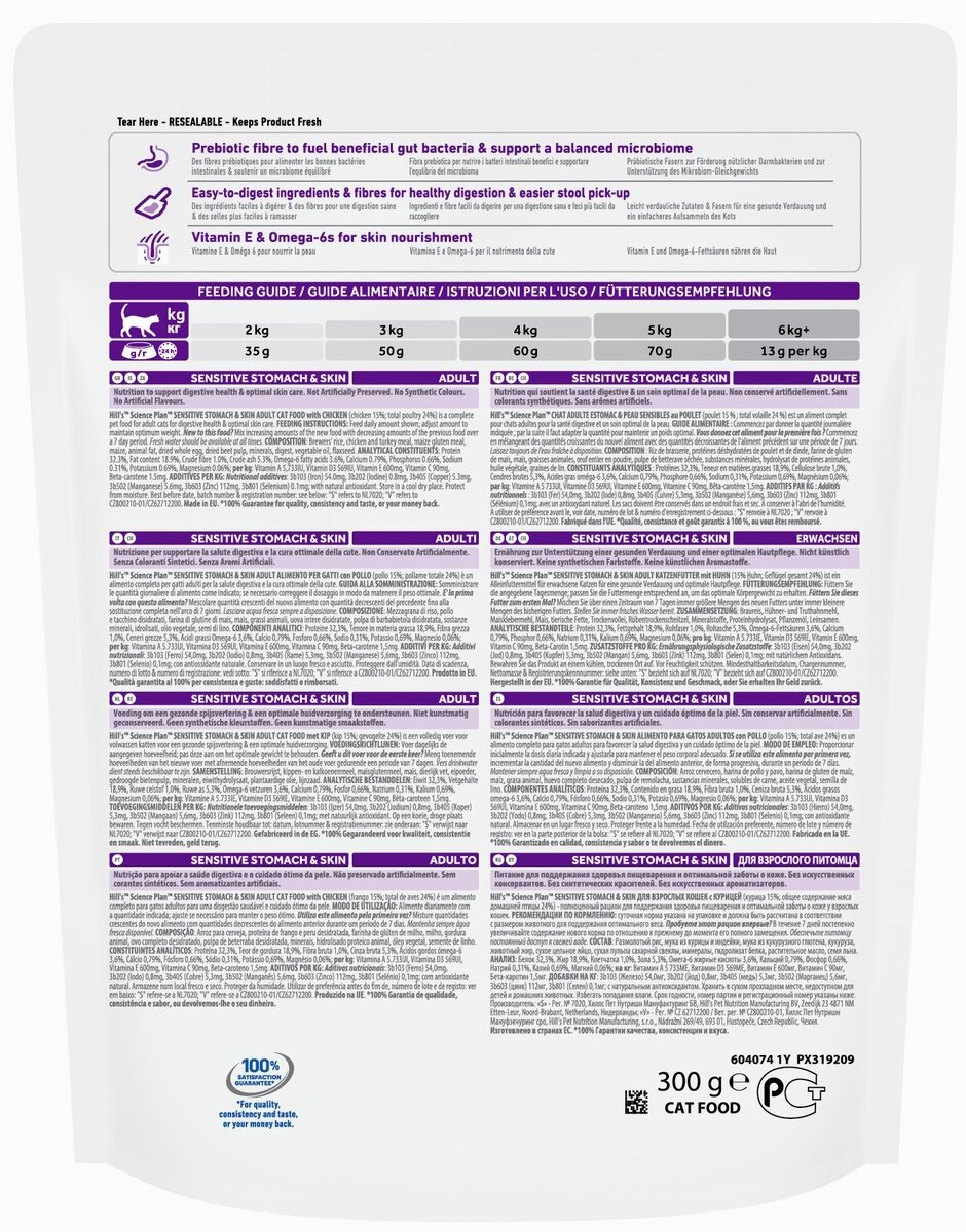 Сухой корм Hill's Science Plan Sensitive Stomach & Skin для кошек с чувствительным пищеварением и кожей, с курицей, 300 г