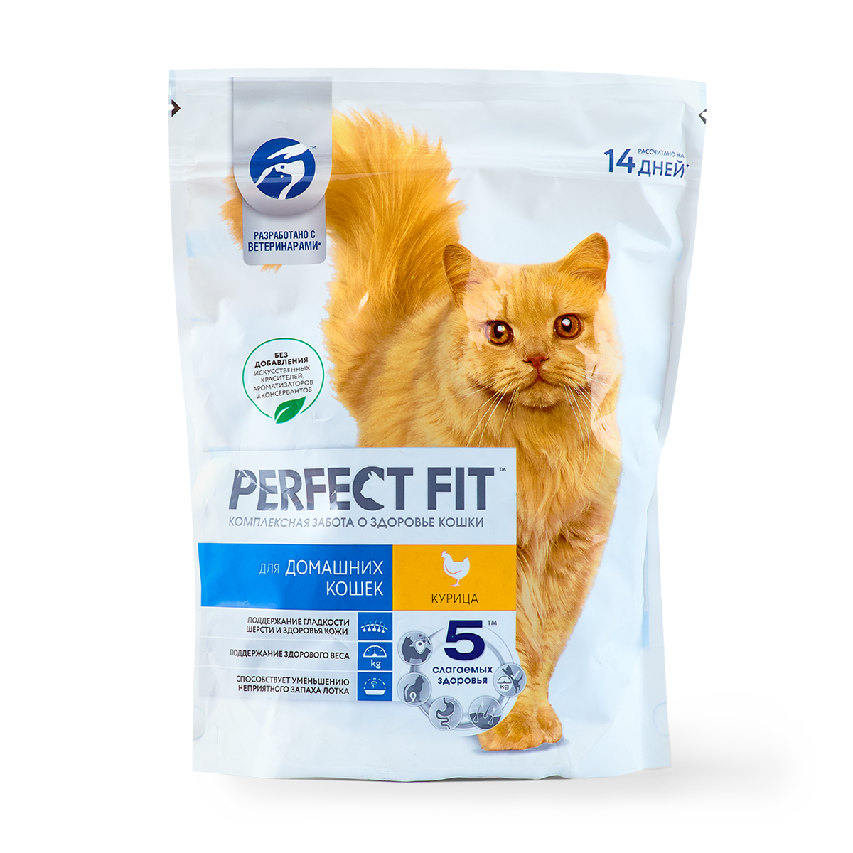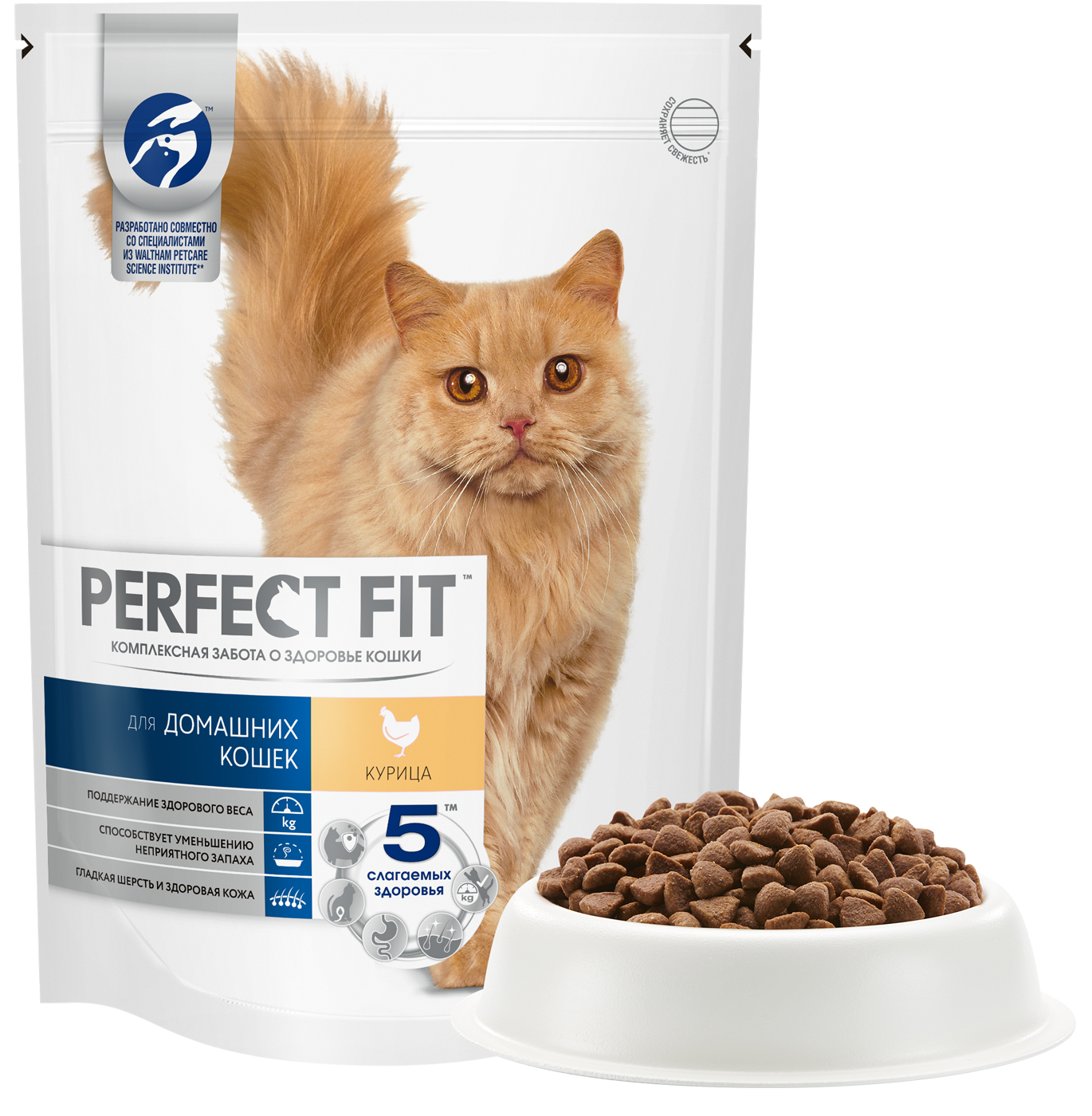 Корм сухой Perfect Fit для взрослых домашних кошек всех пород, с курицей, 1.2 кг