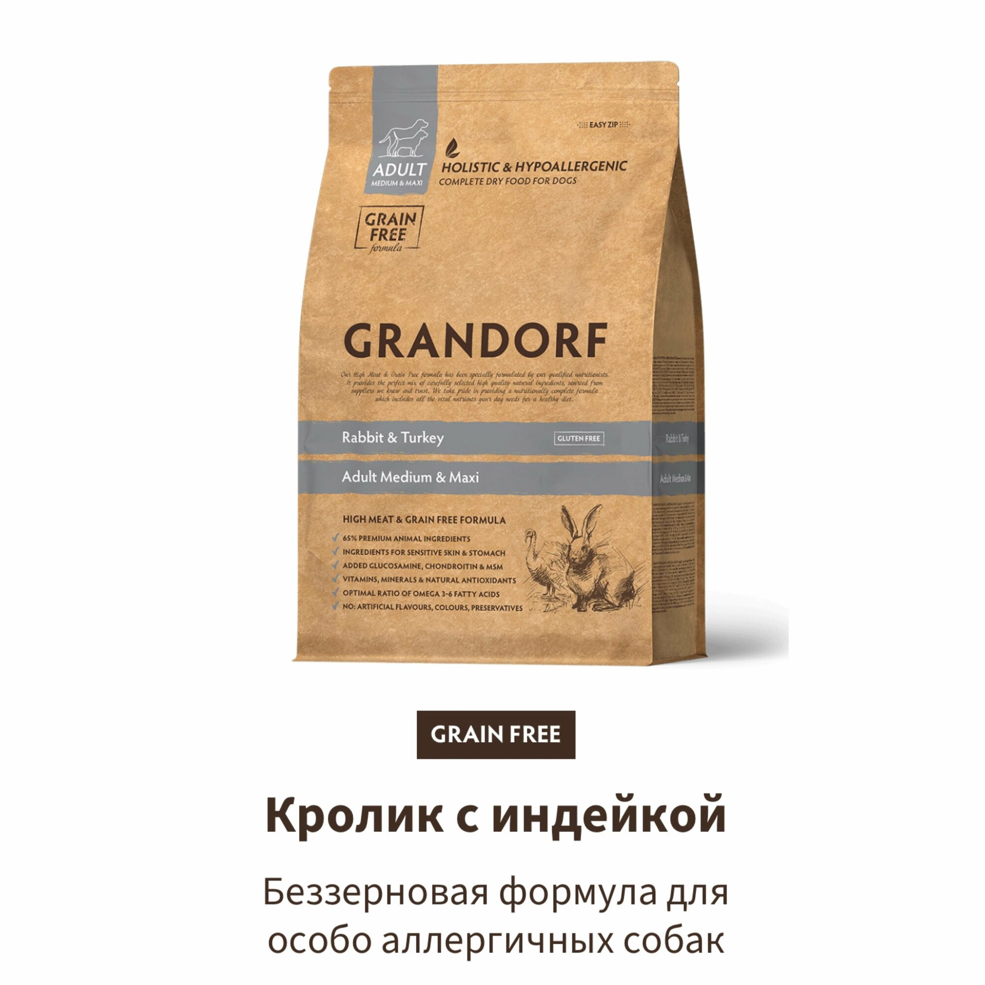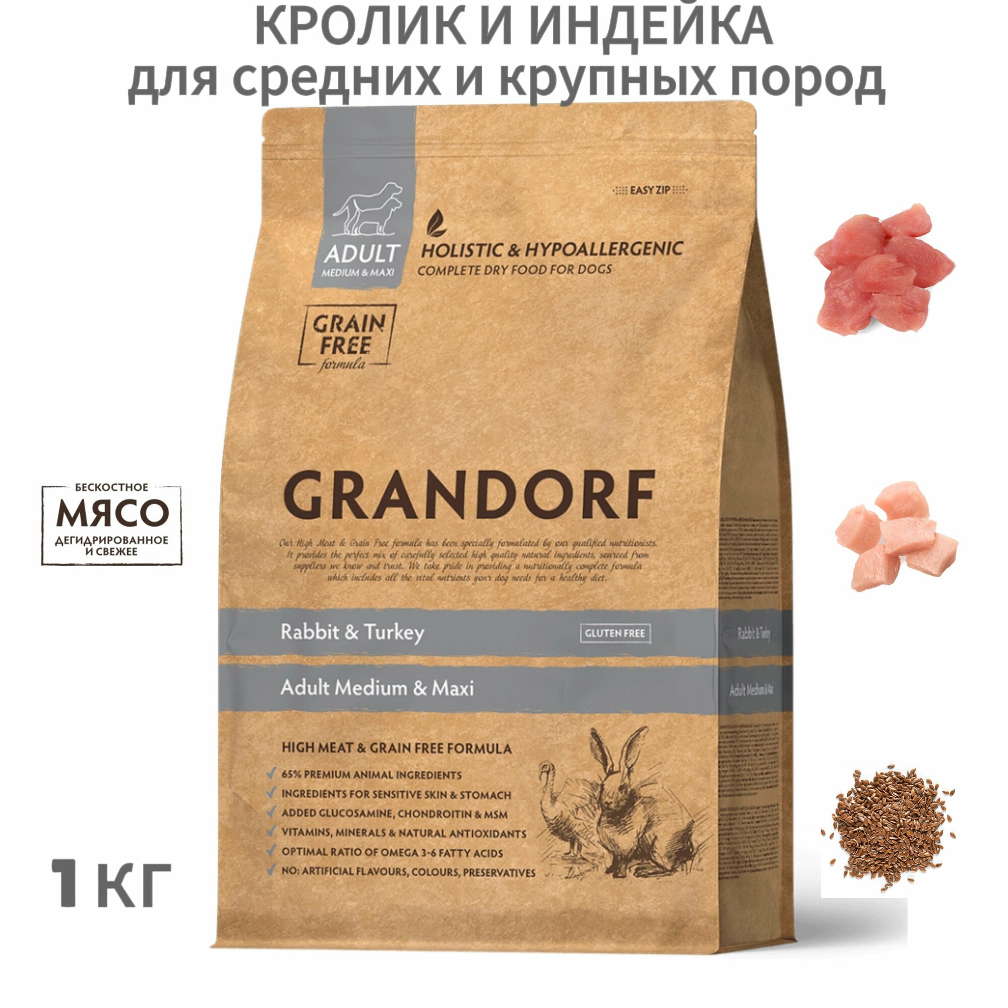 Сухой корм GRANDORF DOG Rabbit&Turkey MED&MAXI (кролик с индейкой для собак средних и крупных пород) 3 кг.