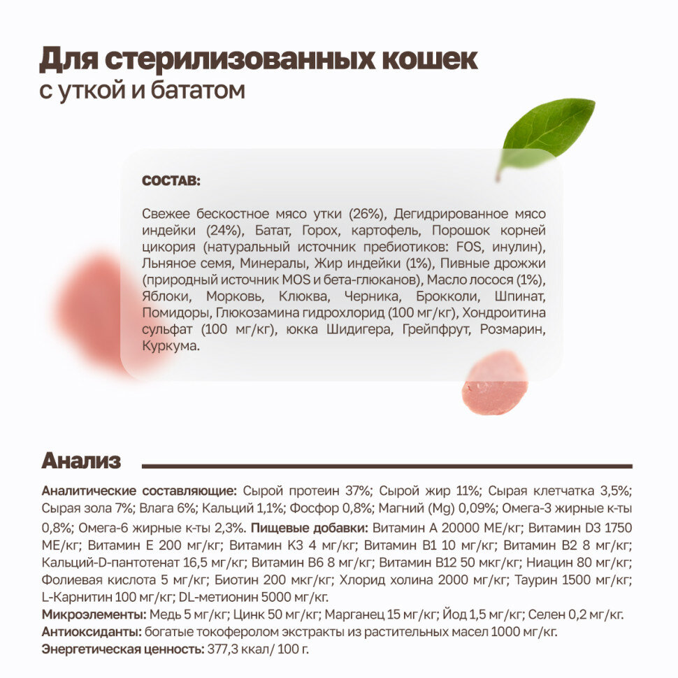 Корм сухой Grandorf Fresh , беззерновой с живыми пробиотиками, свежее мясо индейки с бататом для стерилизованных кошек, 2 кг
