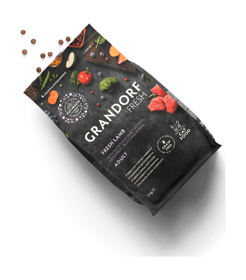 Сухой беззерновой корм Grandorf Fresh свежее мясо ягненка с бататом, с живыми пробиотиками для взрослых кошек с чувствительным пищеварением или склонных к аллергии, 2 кг