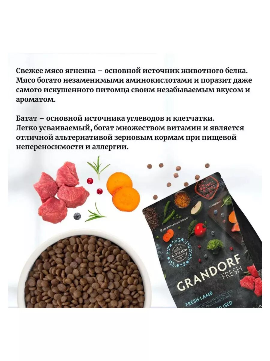 Сухой беззерновой корм Grandorf Fresh свежее мясо ягненка с бататом, с живыми пробиотиками для взрослых кошек с чувствительным пищеварением или склонных к аллергии, 2 кг