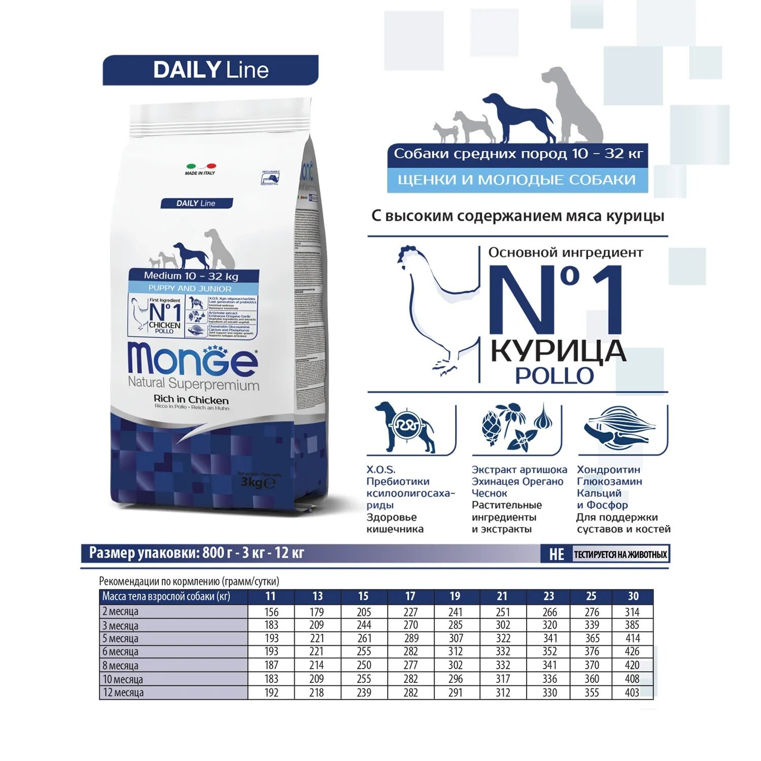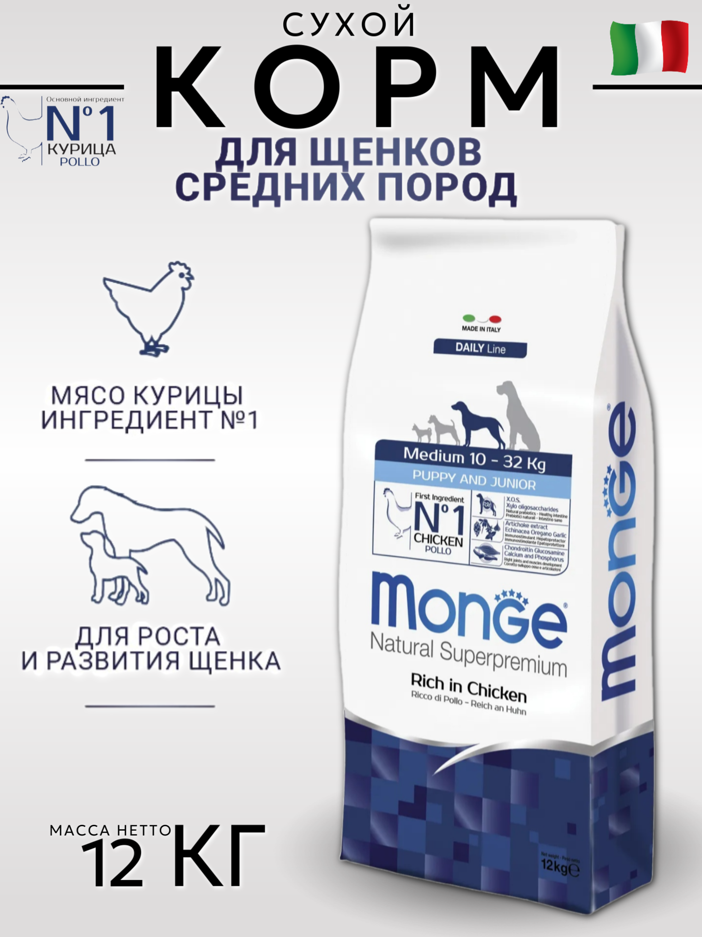 Сухой корм для щенков Monge Daily Line Medium Puppy, курица 12 кг (для средних и крупных пород)