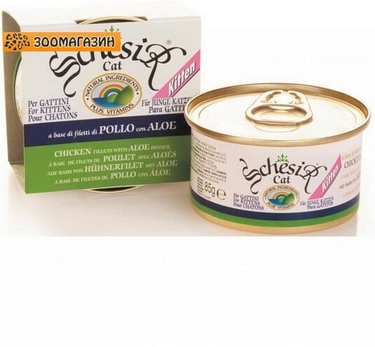 Корм для котят SCHESIR цыпленок, алое конс. 85г (упаковка - 14 шт)