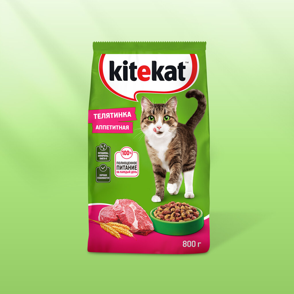 Корм для кошек сухой Kitekat Телятинка аппетитная, для взрослых кошек, 800 г