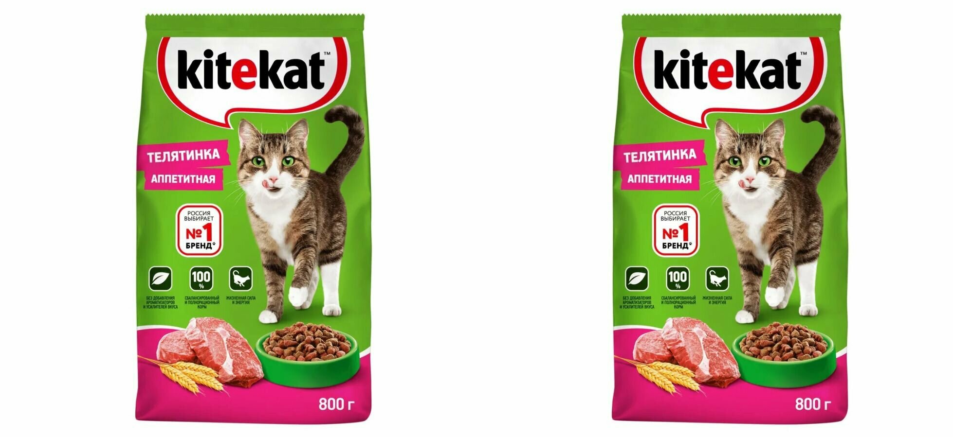 Купить Сухой полнорационный корм KITEKAT для взрослых кошек «Телятинка Аппетитная», 2 шт по 800 г
