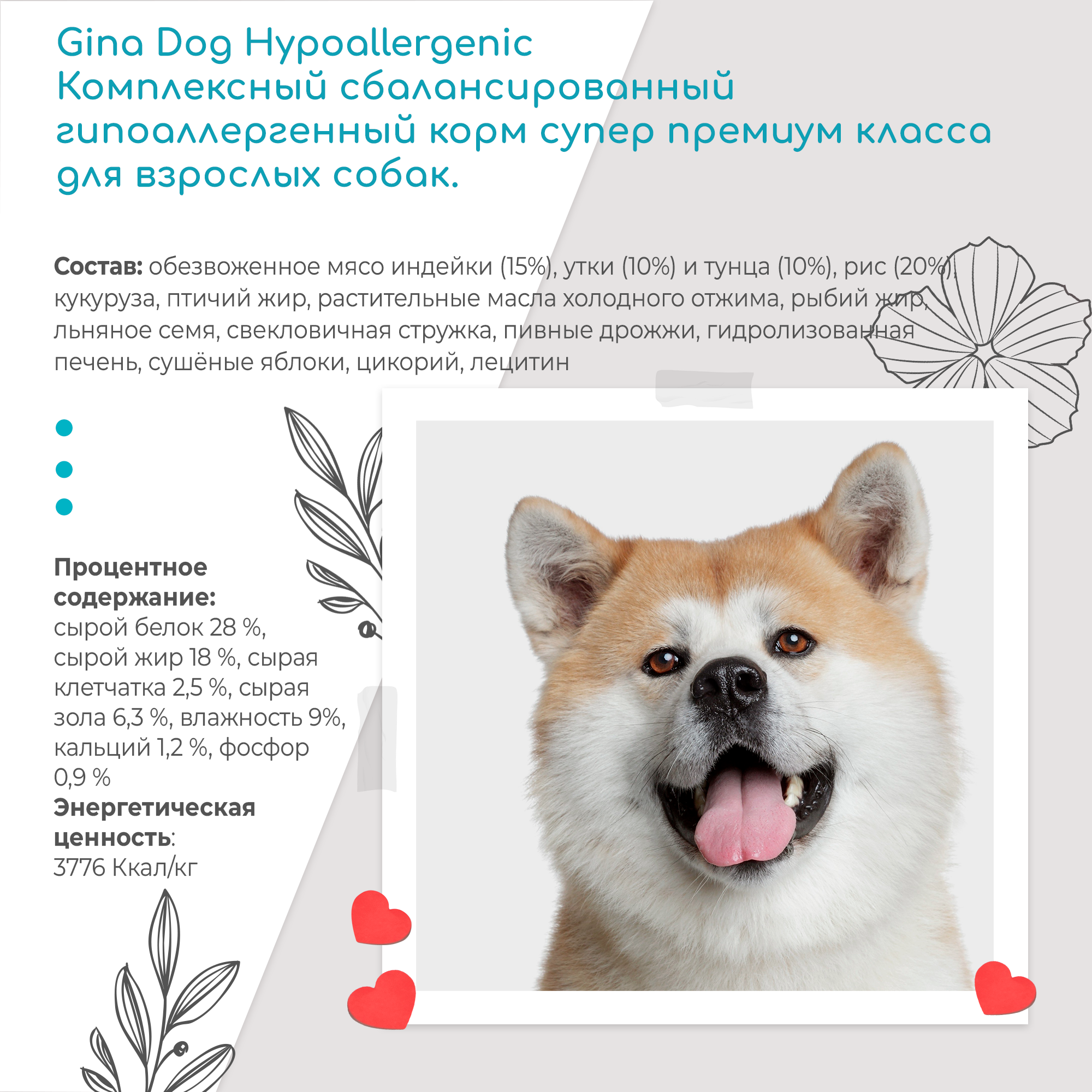 Корм для собак Gina Dog Hypoallergenic, сухой, 18 кг