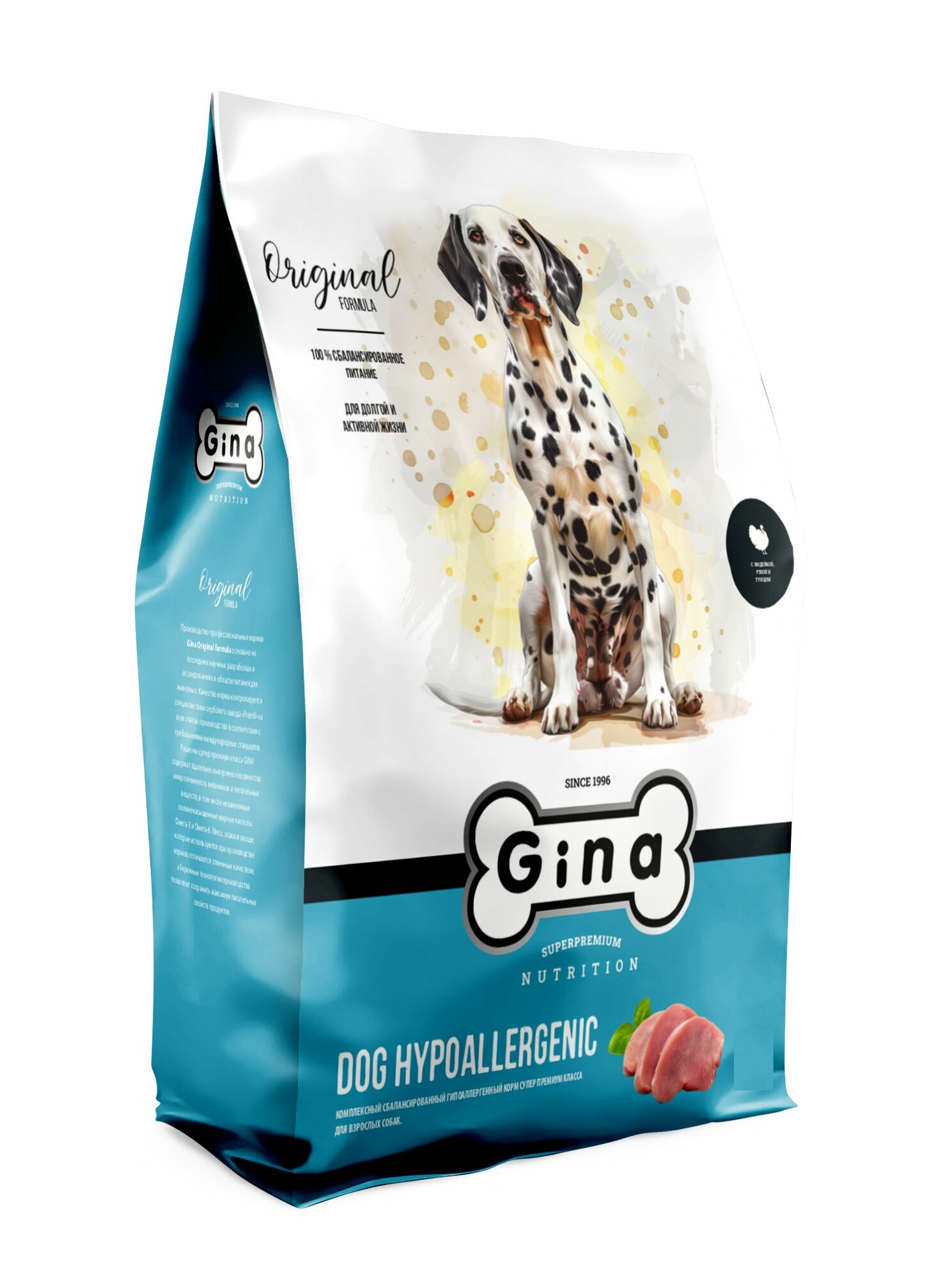 Купить Gina Dog Hypoallergenic сухой гипоаллергенный корм для взрослых собак с индейкой и уткой - 3 кг