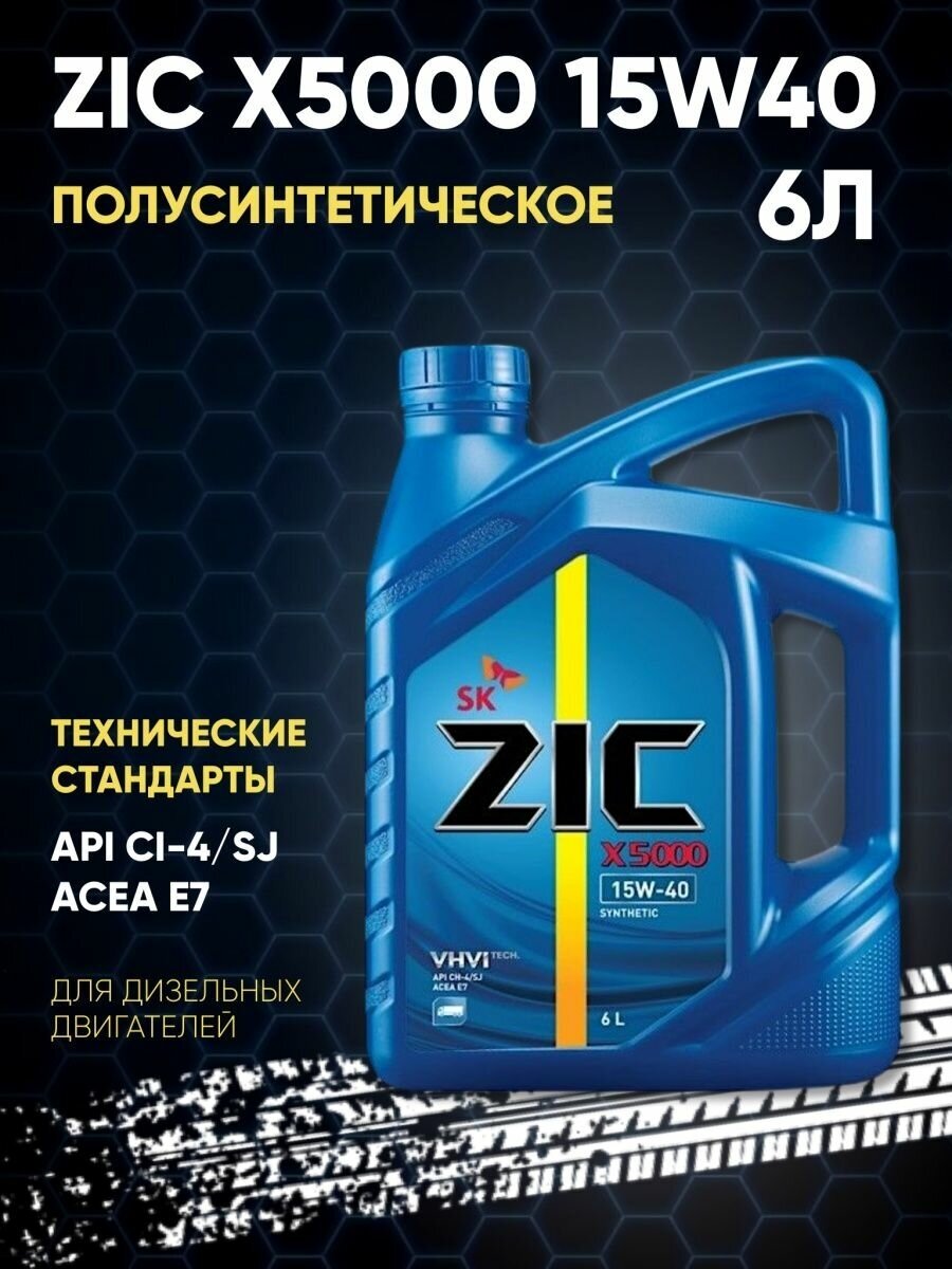 Масло моторное zic x5000 15w-40 диз п/с 6 л 172604 zic 172604