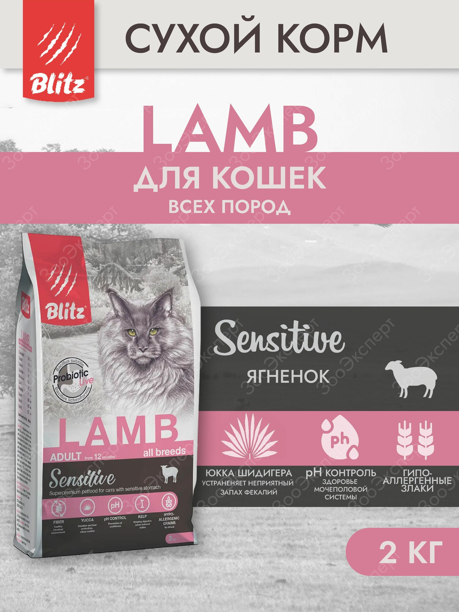 Сухой корм для кошек Blitz 2кг Adult Sensitive Lamb Ягненок/Блиц Сухой корм для кошек