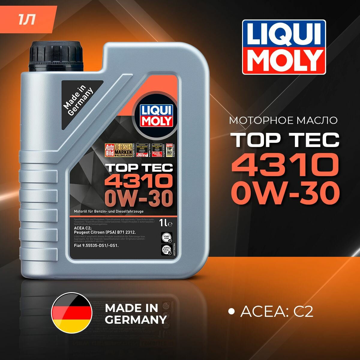 Liqui moli1 LIQUI MOLY Масло мотор. Top Tec 4310 0W-30 C2 (1л) 2361