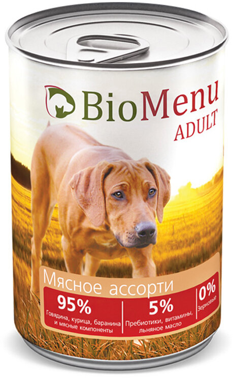 BioMenu ADULT Консервы для собак Мясное ассорти 95%-мясо 100г - 24 шт