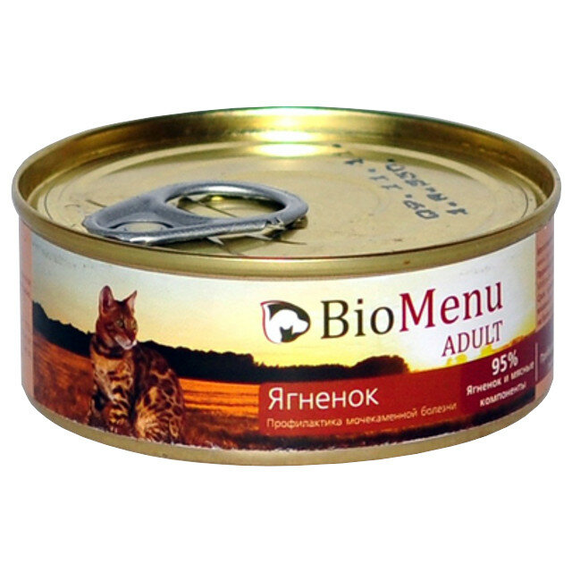 Корм влажный BioMenu Adult паштет ягненок для взрослых кошек для профилактики МКБ (24шт x 100 г)
