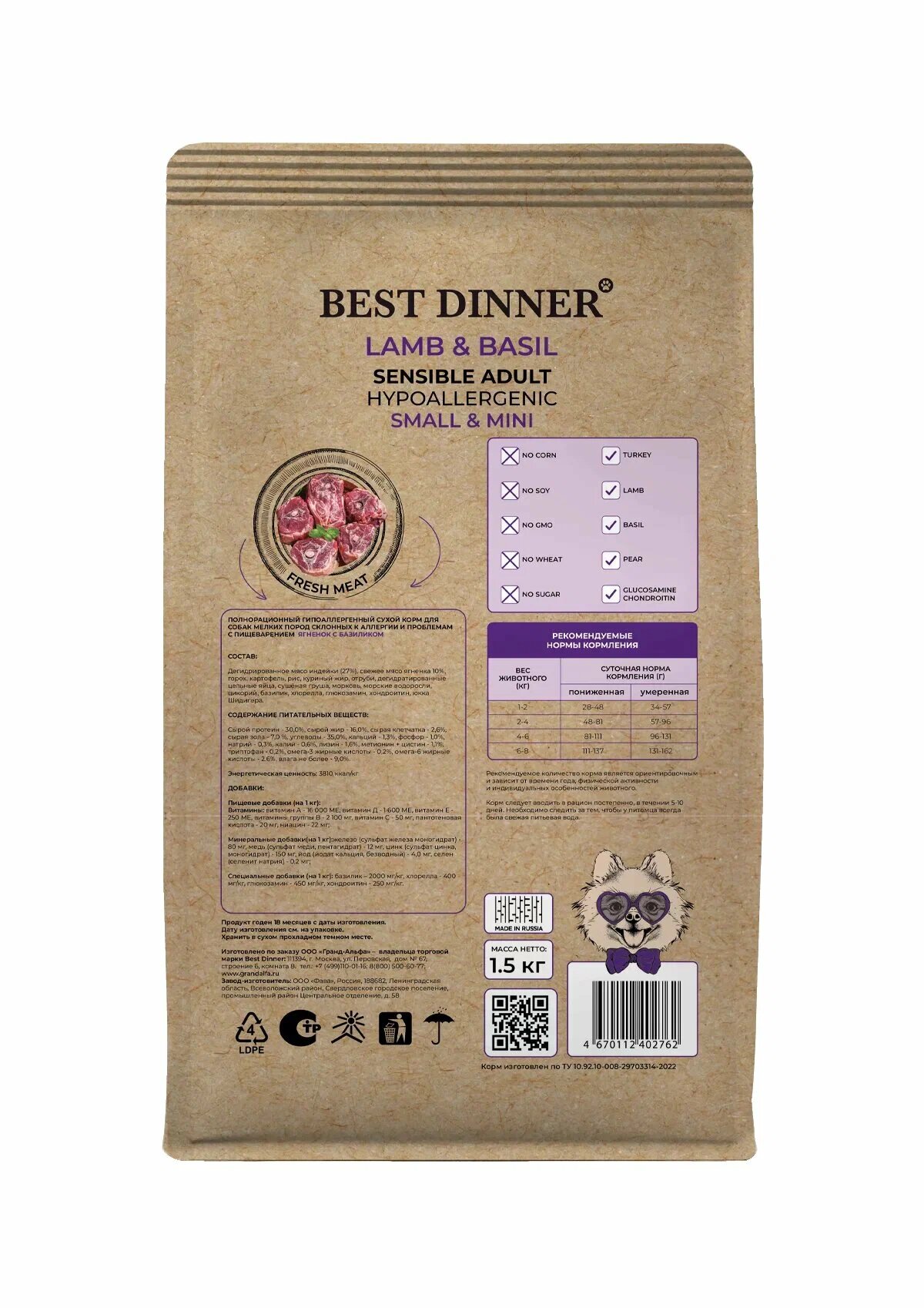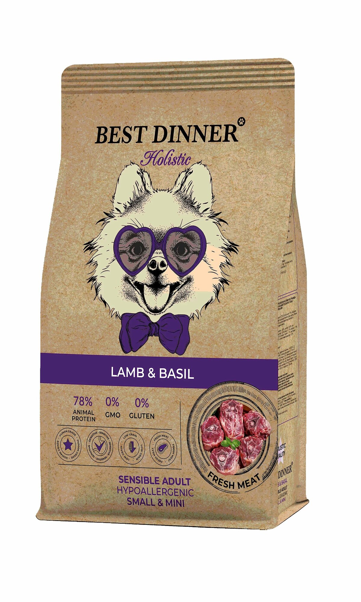 BEST DINNER HOLISTIC DOG ADULT SMALL & MINI SENSIBLE для взрослых собак маленьких пород с чувствительным пищеварением с ягненком и базиликом (1,5 кг)