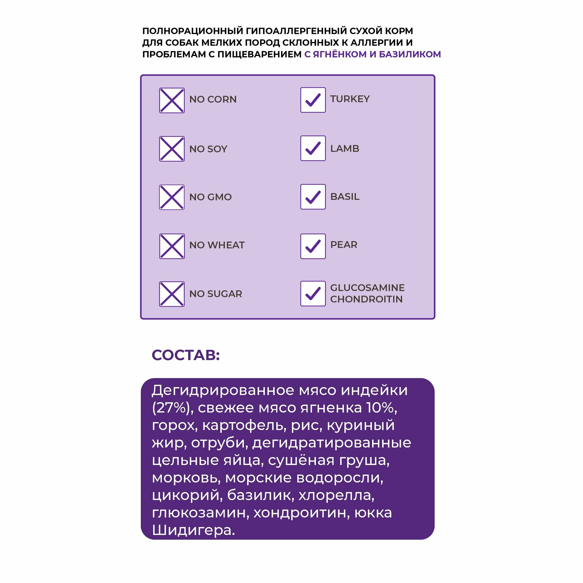 BEST DINNER Holistic Adult Sensible Hypoallergenic Small & Mini Lamb & Basil сухой гипоаллергенный корм для собак мелких пород с ягненком и базиликом (3 кг)
