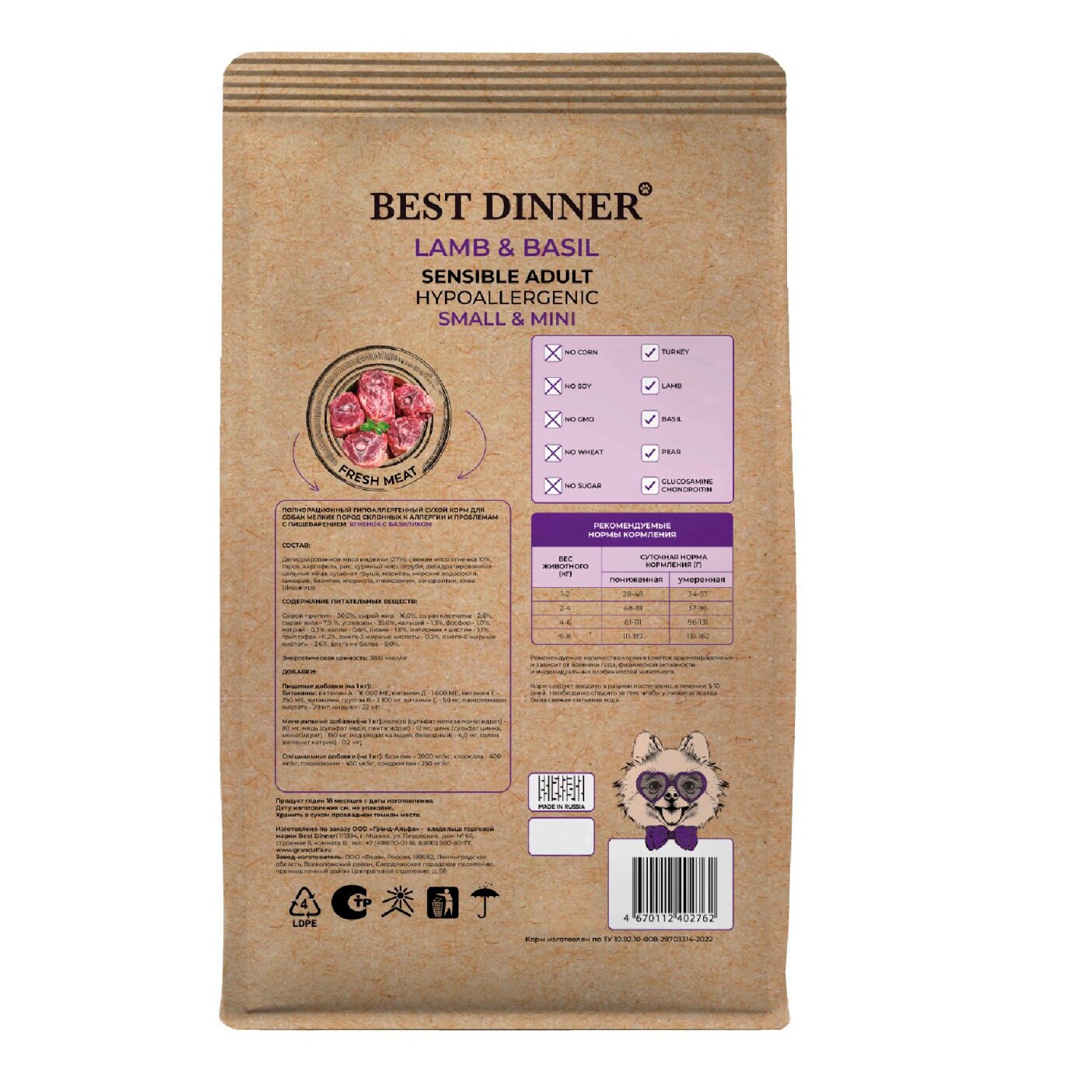 Best Dinner Adult Sensible Hypoallergenic Small & Mini LAMB&BASIL Корм сухой для собак мелких пород с ягненком и базиликом 3кг