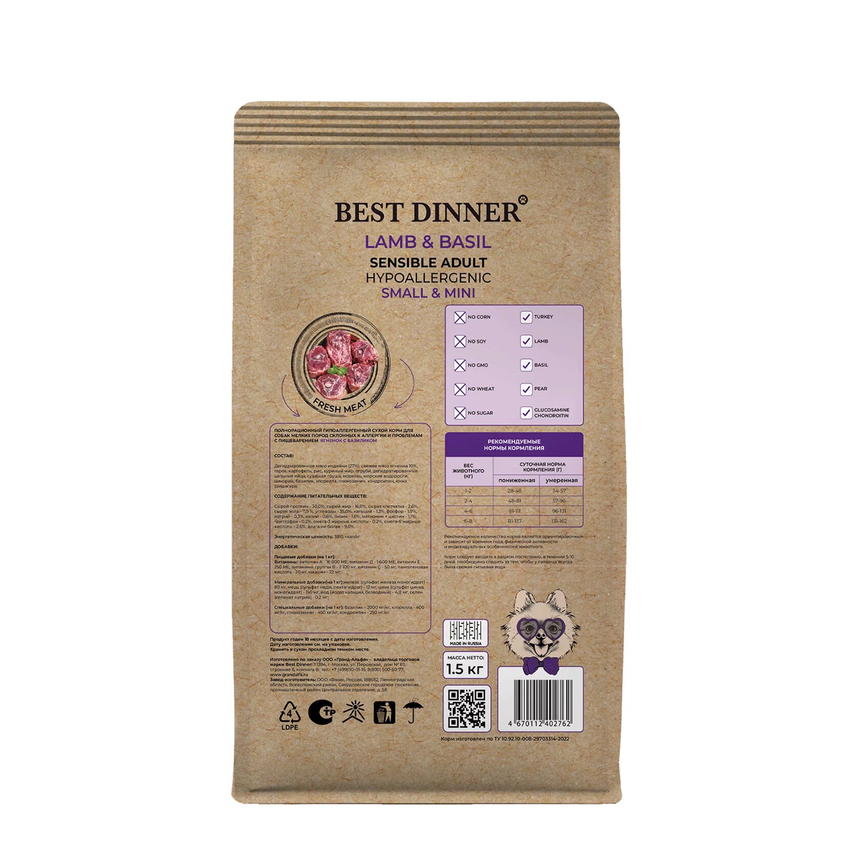 BEST DINNER Holistic Sensible Hypo Adult Small&Mini Корм сух.ягн./базилик д/соб.мелк.пор.1,5кг