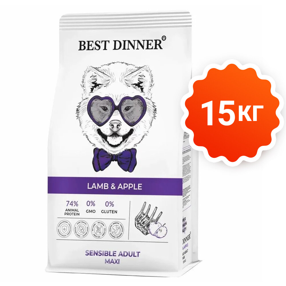 Корм сухой BEST DINNER Sensible Adult Maxi Lamb&Apple, ягненок с яблоком, для собак крупных пород, 15кг
