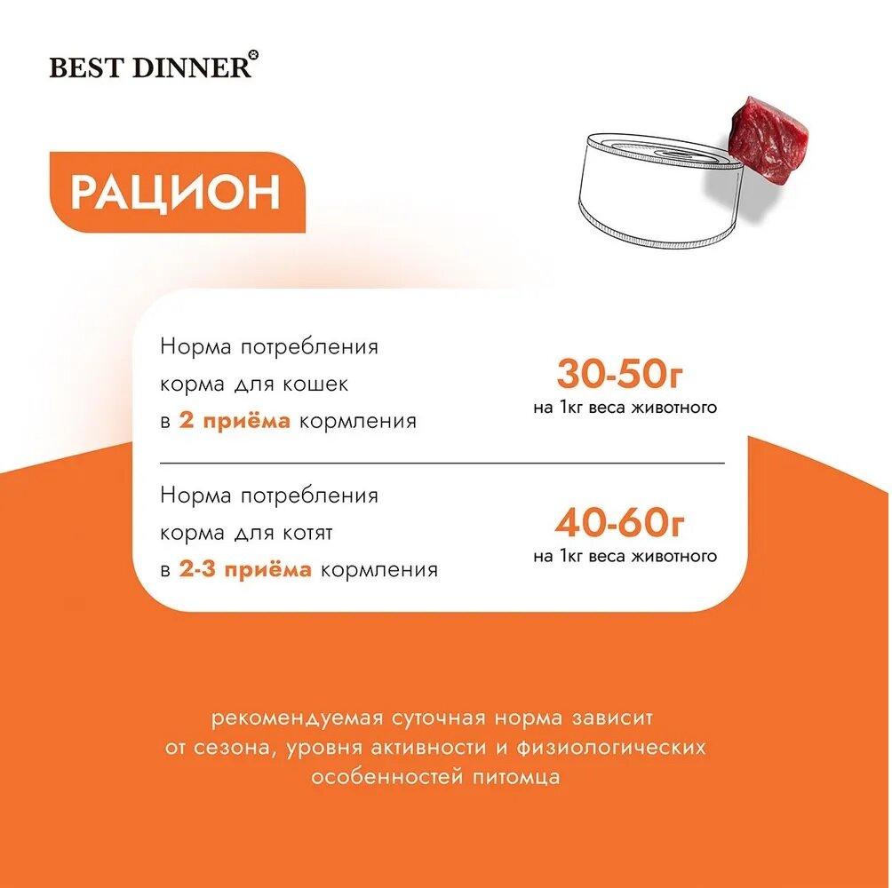 СохранитьКонсервы Best Dinner High Premium для любых кошек. Натуральная индейка (12шт*100гр) интересное: