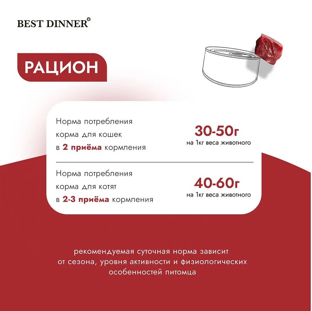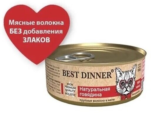 Купить Best Dinner High Premium влажный корм для взрослых кошек с натуральной говядиной, в консервах - 100 г х 12 шт