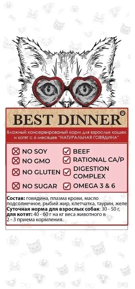 Ниже Вы можете прочитать отзывы на Best Dinner High Premium влажный корм для взрослых кошек с натуральной говядиной, в консервах - 100 г х 12 шт, ознакомится с подробными характеристиками, посмотреть интересные обзоры и фотографии на Best Dinner High Premium влажный корм для взрослых кошек с натуральной говядиной, в консервах - 100 г х 12 шт.