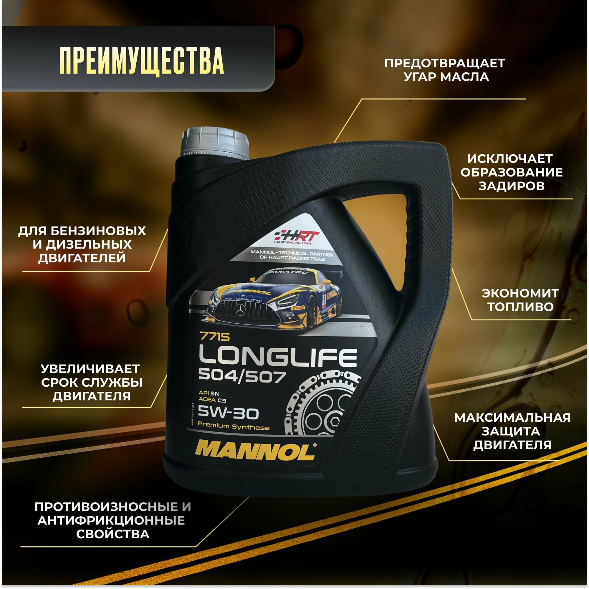 Купить 7715 MANNOL LONGLIFE 504/507 5W30 4 л. Синтетическое моторное масло 5W-30