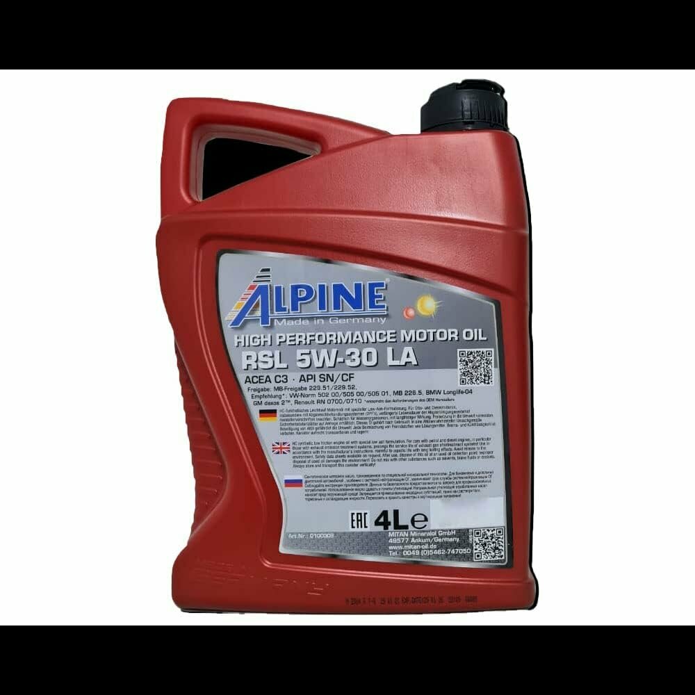 Ниже Вы можете прочитать отзывы на Масло синтетическое Alpine RSL 5W-30LA 4л, арт. 0100309, ознакомится с подробными характеристиками, посмотреть интересные обзоры и фотографии на Масло синтетическое Alpine RSL 5W-30LA 4л, арт. 0100309.